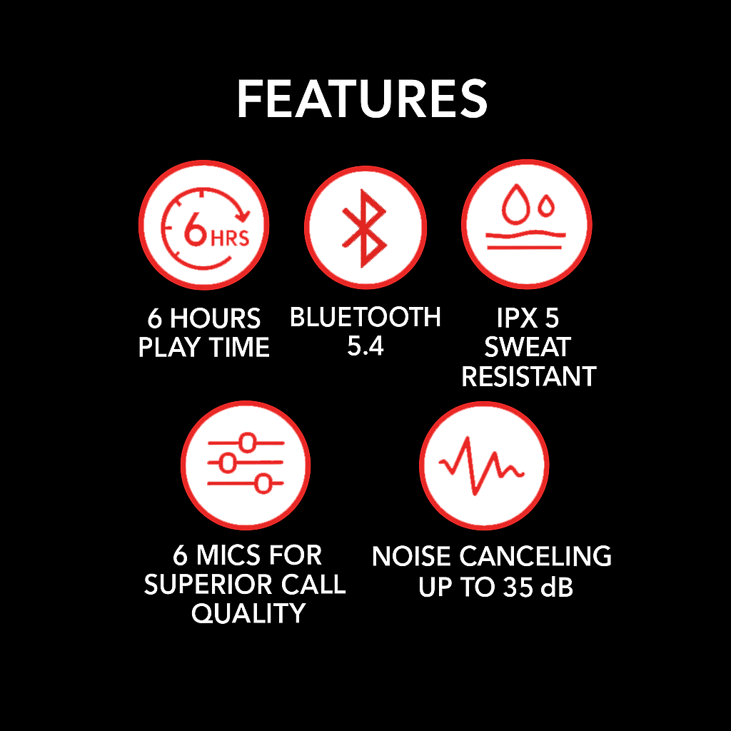 Long Battery Life – Up to 6 hours of playtime on a single charge, and 28 hours total with the charging case.